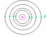 Magnetické indukční čáry přímého vodiče s proudem mají tvar soustředných kružnic ležících v rovinách kolmých k vodiči.